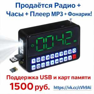 📻 **Продаётся Радио + Часы + Плеер MP3 + Фонарик!** Универсальное устройство «4 в 1» для дома, дачи или работы.