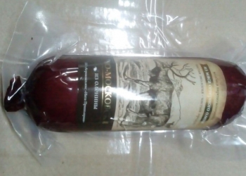 Состав: оленина, шпик свин, соль, специи, фиксатор окраски: нитрит натрия. Пищ/энерг.цен.