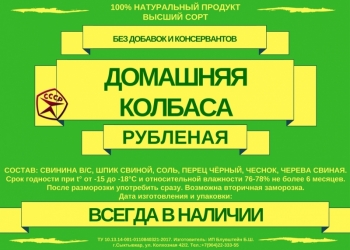 Настоящая "Домашняя колбаса" рубленая п/ф, в ассортименте, а также п/ф из мяса без добавок и консервантов.