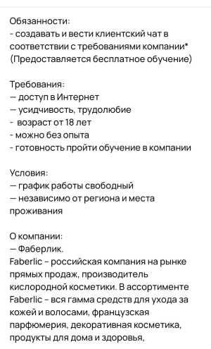 Сфера деятельности: Девушки на работу; Опыт работы: Нет опыта; Тип занятости: Частичная занятость; График работы: Удаленная работа; Вид организации: Работодатель;