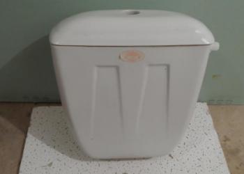 Бачок для унитаза б/у Целый, с крышкой. Верхняя боковая подводка. Расстояние между отверстиями под болты: 13,5 см.