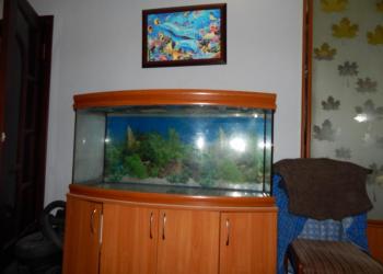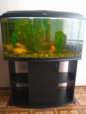 В связи с переездом СРОЧНО продается аквариум со сферическим стеклом на 270 литров с тумбой и со всеми аксессуарами.