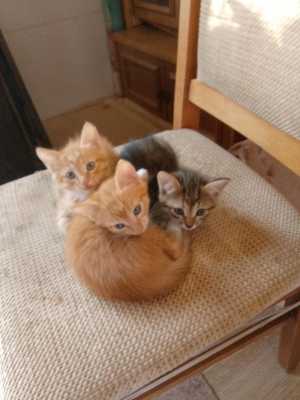 Пристраиваются котята, девочки. Родились 16 апреля 2023 года (в Пасху). Мама - мышеловка. Едят всё, к туалету приучены.