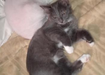 Отдам кошечку, окрас серый, глаза желто-зеленые, девочка, 3,5 месяца. К лотку приучена, ест все, обои не рвет, не кусается.