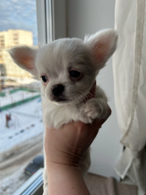 Прeдлaгaютcя для покупки очaровательный длинношерстный, белого окраса мальчик породы чихуaхуa. Родился 21.01.24г.