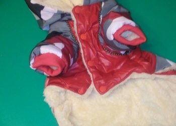 Продаётся зимний комбинезон на щенка или маленькую собачку девочку, мало б/у (одет не более 10 раз), длинна по спинке 28см...