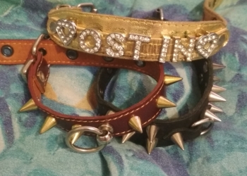 Продам ошейники для собачки. Кожаные, ручная работа. Нам малы. На обхват шеи до 19см.
