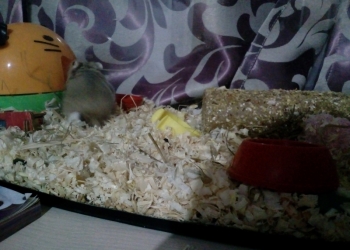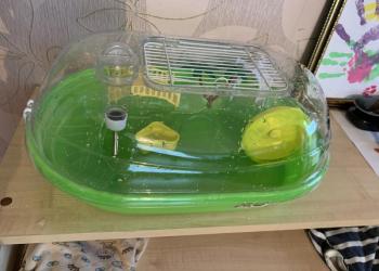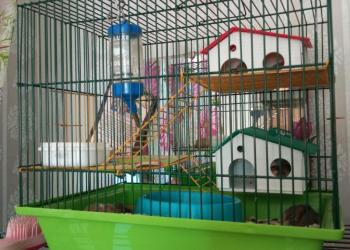 Клетка в хорошем состоянии С колесом для хомяка, маленьким домиком, 2-мя поилками и кормушкойкормушкой.